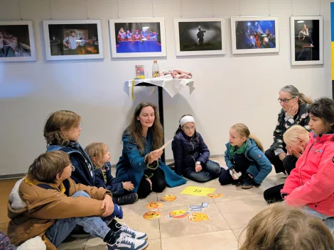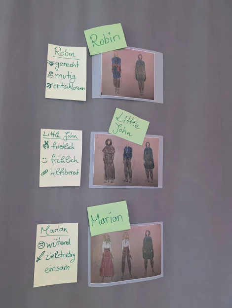 Die Aufführung der Kinder vor ihren Eltern und Geschwistern am Freitagnachmittag bildete den Abschluss der Woche. Die Kinder zeigten in den selbst gebastelten Kostümen Standbilder zu zentralen Themen der Geschichte von Robin Hood, sie hielten Demo-Schilder für das Teilen und für Zusammenhalt in die Höhe. Fünf Kinder lasen die Geschichte dazu vor. So entstanden stimmungsvolle Momente, die dazu inspirierten über Gerechtigkeit und Milde nachzudenken. Robin Hood steht dafür, „dass alle gleich viel haben sollen“, sagte Tilda (9) im Anschluss an die fünf Tage im WLT.