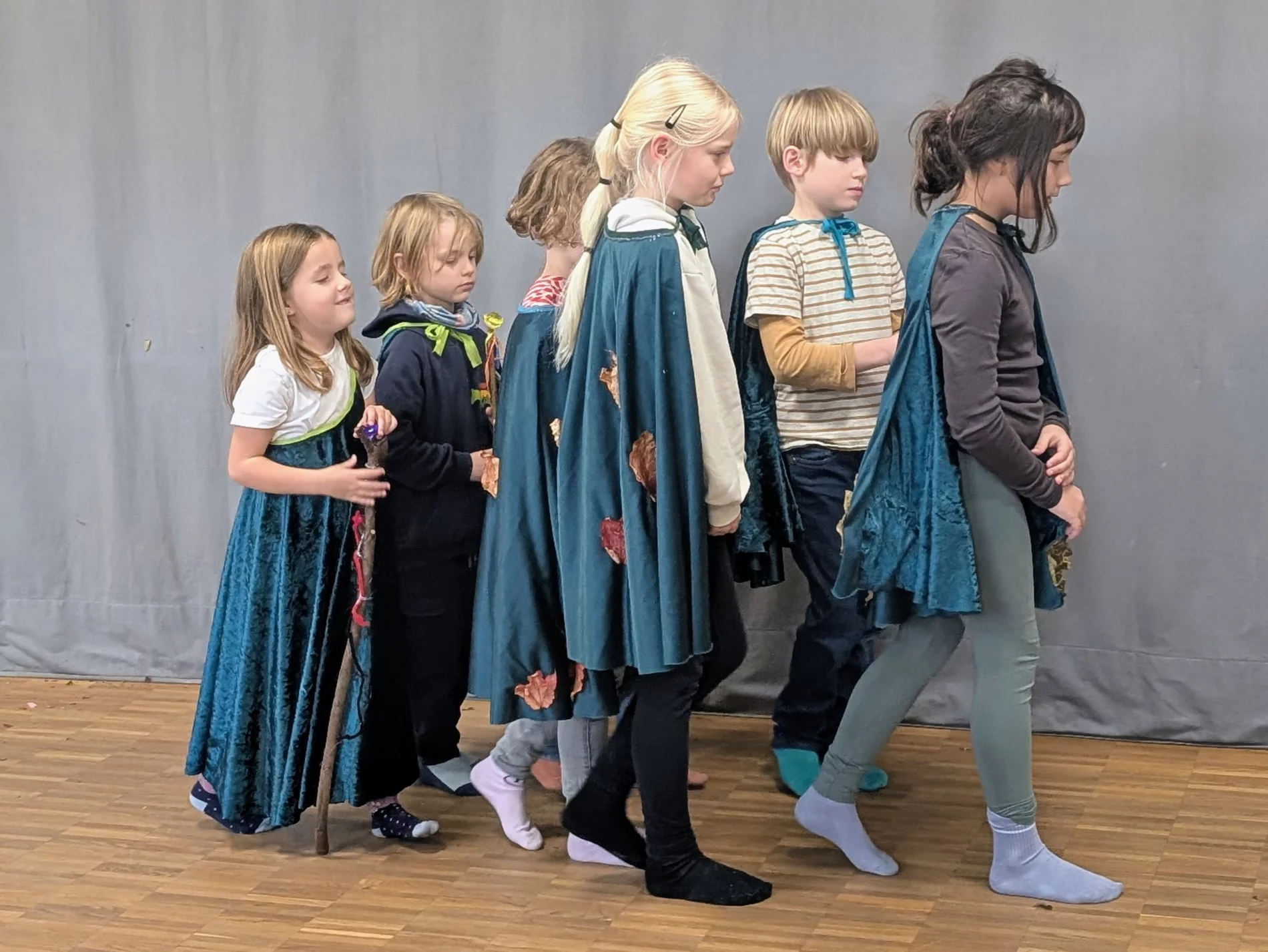 Am ersten Tag standen vor allem verschiedene Spiele zum gegenseitigen Kennenlernen an, wie „Ich packe meinen Koffer – Waldedition“ und „Waldmemory“. Am zweiten Tag begann die große Bastelaktion. Aus einem selbst mitgebrachten Stock, bunten Bändern und Kristallen entstanden Zauberstäbe, die bei den Kindern für Entzücken sorgten. Mit mitgebrachtem Herbstlaub dekorierten sie Umhänge aus dunkelgrünem Pannesamt. „Mir hat besonders gut gefallen, dass wir so viel gebastelt haben und vor allem die Blätter auf den Umhängen“, sagte Frieda anschließend.