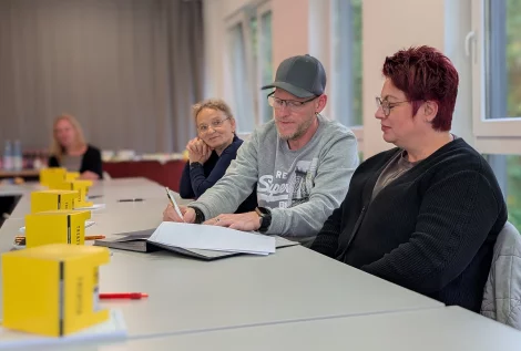 10.10.2025 – Einen Abschied und ein Willkommen feierte das Westfälische Landestheater am Mittwoch beim sogenannten „Rucksackfest“. Für einen gemeinsamen Austausch und einen Blick hinter die Kulissen lud das WLT seine Kooperationspartnerinnen in das Probenzentrum ein. Die Partnerschaft zwischen dem Theater und Schulen wie Kindertagesstätten, der so genannte „Theaterrucksack“, hat das Ziel, Kindern und Jugendlichen einen Theaterbesuch pro Jahr zu ermöglichen.