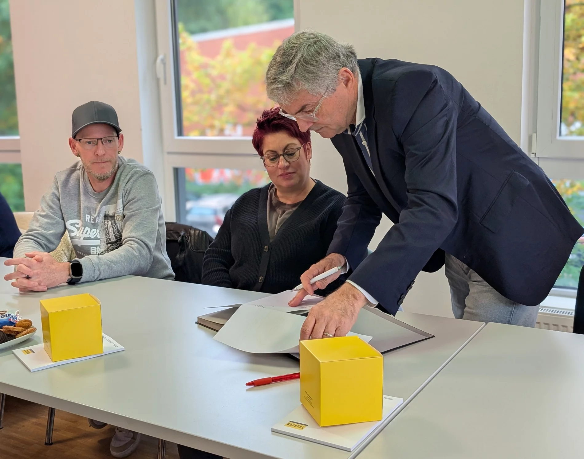 In geselliger Runde begrüßte der Geschäftsführende Direktor Günter Wohlfarth die Gäste. Er hieß die 24. Kindertagesstätte als Kooperationspartnerin des WLT willkommen. Die Städtische Tageseinrichtung Lummerland, in der 77 Kinder betreut werden, unterzeichnete den Vertrag zu großer Freude von Erzieherin Nicole Kehl und Leiter Frank Strümpel: